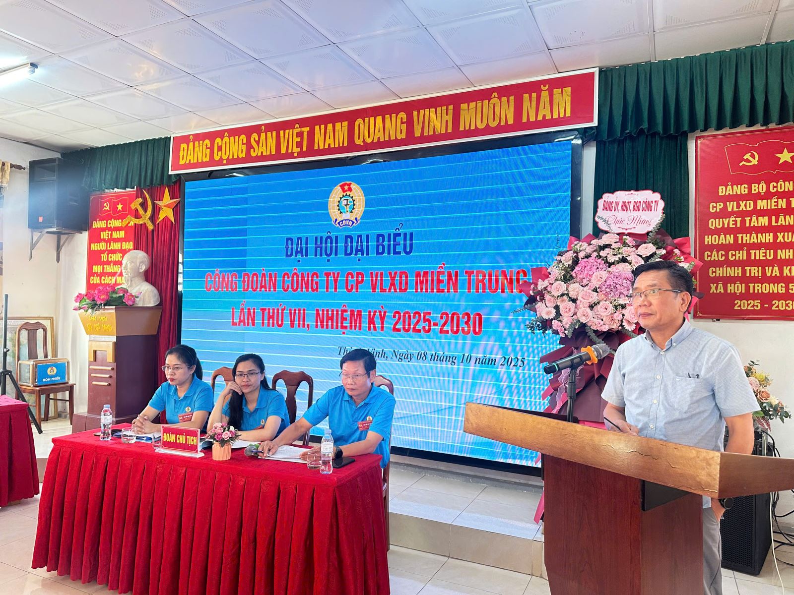 Ngày 08/10/2025, tại trụ sở Công ty CP VLXD Miền Trung (số 33 Nguyễn Thái Học, phường Thành Vinh, tỉnh Nghệ An), Công đoàn Công ty CP VLXD Miền Trung đã long trọng tổ chức Đại hội đại biểu lần thứ VII, nhiệm kỳ 2025 – 2030.